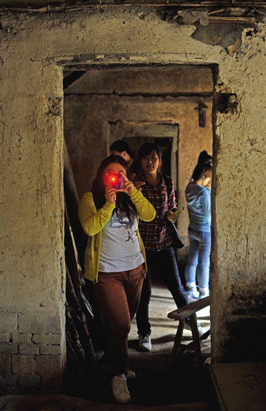 10月15日,莫言舊居內(nèi),一位參觀者對室內(nèi)景象進(jìn)行拍攝。