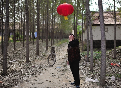 10月15日,高密市大欄鄉(xiāng)平安莊,村委會(huì)安排人在莫言舊居的周圍掛起了紅燈籠。