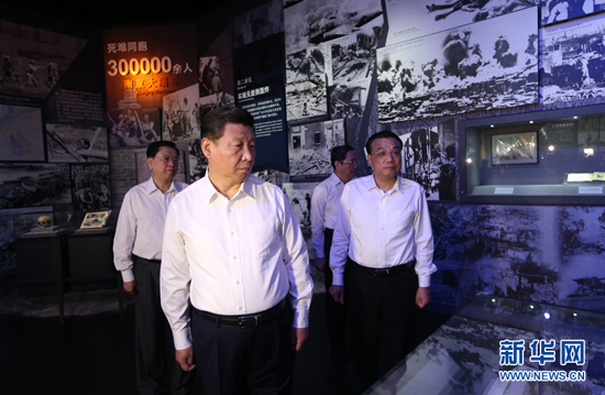 7月7日,黨和國(guó)家領(lǐng)導(dǎo)人習(xí)近平、李克強(qiáng)、張德江、俞正聲、劉云山、王岐山、張高麗等在中國(guó)人民抗日戰(zhàn)爭(zhēng)紀(jì)念館,參觀紀(jì)念中國(guó)人民抗日戰(zhàn)爭(zhēng)暨世界反法西斯戰(zhàn)爭(zhēng)勝利70周年主題展覽《偉大勝利歷史貢獻(xiàn)》。 新華社記者 蘭紅光 攝