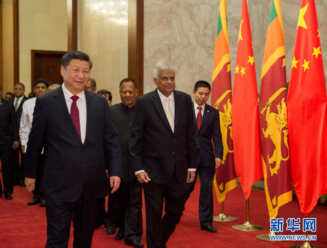 習(xí)近平會(huì)見(jiàn)斯里蘭卡總理維克勒馬辛哈