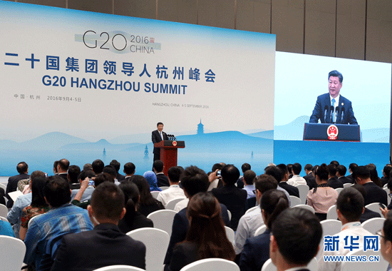 9月5日,二十國集團領(lǐng)導人第十一次峰會閉幕后,國家主席習近平在杭州國際博覽中心會見中外記者。 新華社記者姚大偉攝