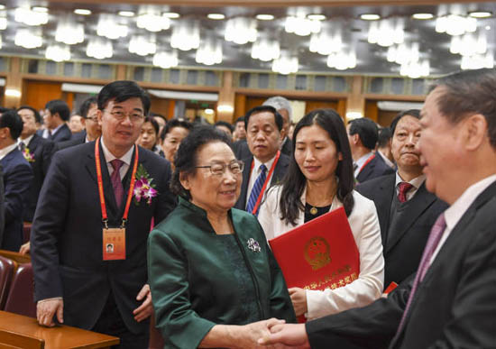 1月9日,中共中央、國務院在北京隆重舉行國家科學技術(shù)獎勵大會。這是大家向獲得2016年度國家最高科學技術(shù)獎的中國中醫(yī)科學院屠呦呦研究員表示祝賀。新華社記者 李學仁 攝