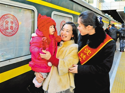 大連火車站工作人員熱情詢問重點旅客的乘車需求。 |