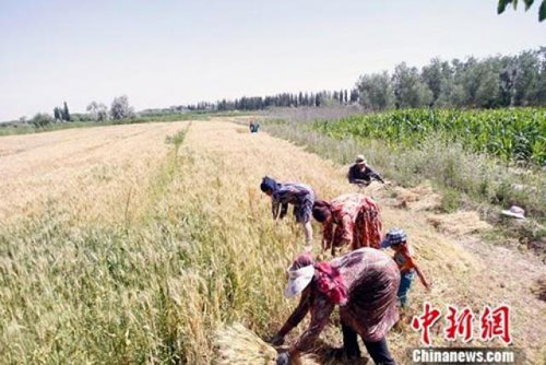 資料圖:農(nóng)民正在搶收夏糧。中新社記者 王小軍 攝