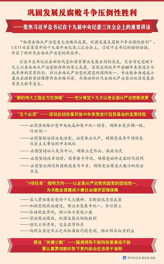 圖表:鞏固發(fā)展反腐敗斗爭壓倒性勝利——聚焦習(xí)近平總書記在十九屆中央紀委三次全會上的重要講話 新華社記者 曲振東 編制