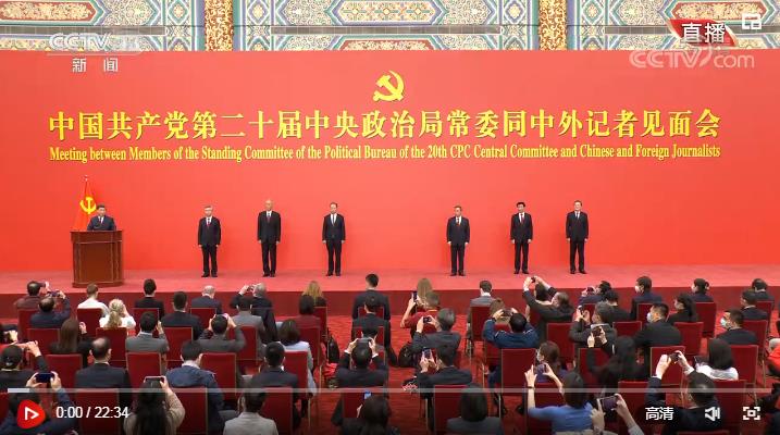 “我們一定牢記黨的性質(zhì)和宗旨,牢記自己的使命和責(zé)任,恪盡職守、勤勉工作,決不辜負(fù)黨和人民重托!23日中午,在中國(guó)共產(chǎn)黨第二十屆中央委員會(huì)第一次全體會(huì)議上當(dāng)選為中共中央總書(shū)記的習(xí)近平,率領(lǐng)新一屆中央政治局常委在人民大會(huì)堂同采訪黨的二十大的中外記者親切見(jiàn)面。習(xí)近平總書(shū)記發(fā)表重要講話時(shí)強(qiáng)調(diào):“藍(lán)圖已經(jīng)繪就,號(hào)角已經(jīng)吹響。我們要踔厲奮發(fā)、勇毅前行,努力創(chuàng)造更加燦爛的明天!