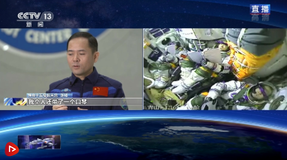 航天員張陸為首次太空之旅準備了音樂器材,來豐富太空生活。