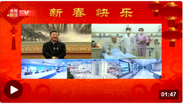 中華民族傳統(tǒng)節(jié)日春節(jié)即將到來(lái)之際,中共中央總書(shū)記、國(guó)家主席、中央軍委主席習(xí)近平通過(guò)視頻連線看望慰問(wèn)基層干部群眾,向全國(guó)各族人民致以新春的美好祝福,祝各族人民身體健康、闔家幸福、事業(yè)進(jìn)步、兔年吉祥!祝愿?jìng)ゴ笞鎳?guó)繁榮昌盛、國(guó)泰民安!