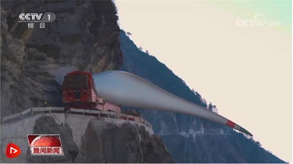 75米風(fēng)機(jī)葉片上山 助力清潔能源發(fā)展