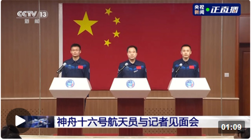 今天(29日)11時,景海鵬、朱楊柱、桂海潮3名航天員在酒泉衛(wèi)星發(fā)射中心問天閣與中外媒體記者集體見面。