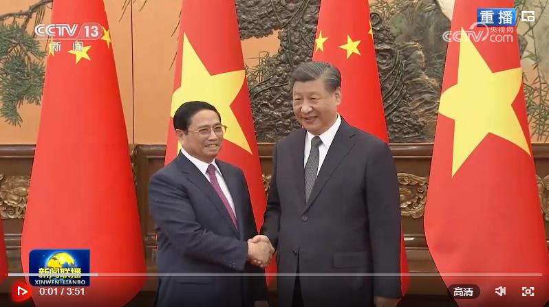 6月27日下午,國家主席習(xí)近平在人民大會堂會見來華進(jìn)行正式訪問的越南總理范明政。