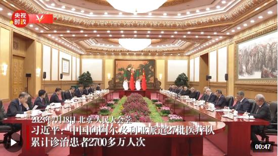 習(xí)近平指出,今年是中國向阿爾及利亞派遣醫(yī)療隊(duì)60周年,也是中國向海外派遣援外醫(yī)療隊(duì)60周年。60年來,中方向阿方派遣27批醫(yī)療隊(duì)、3522人次醫(yī)護(hù)人員,累計(jì)診治患者2700多萬人次,接生207萬多新生兒,樹立了中阿友誼的豐碑。