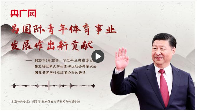 這段話出自2023年7月28日習(xí)近平主席在為出席第31屆世界大學(xué)生夏季運(yùn)動(dòng)會(huì)開幕式的國際貴賓舉行歡迎宴會(huì)時(shí)的講話。