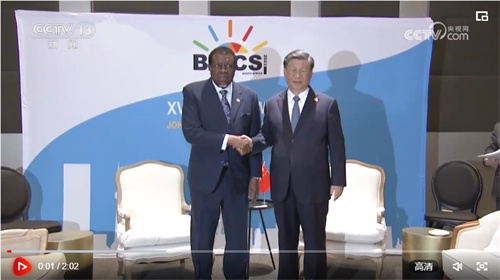 當(dāng)?shù)貢r間8月24日上午,國家主席習(xí)近平在約翰內(nèi)斯堡出席金磚國家領(lǐng)導(dǎo)人會晤期間會見納米比亞總統(tǒng)根哥布。