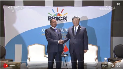 當(dāng)?shù)貢r(shí)間8月24日上午,國(guó)家主席習(xí)近平在約翰內(nèi)斯堡出席金磚國(guó)家領(lǐng)導(dǎo)人會(huì)晤期間會(huì)見剛果(布)總統(tǒng)薩蘇。