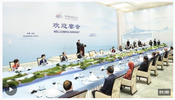 9月23日中午,國(guó)家主席習(xí)近平和夫人彭麗媛在浙江省杭州市西子賓館舉行宴會(huì),歡迎來(lái)華出席杭州第19屆亞洲運(yùn)動(dòng)會(huì)開(kāi)幕式的國(guó)際貴賓。