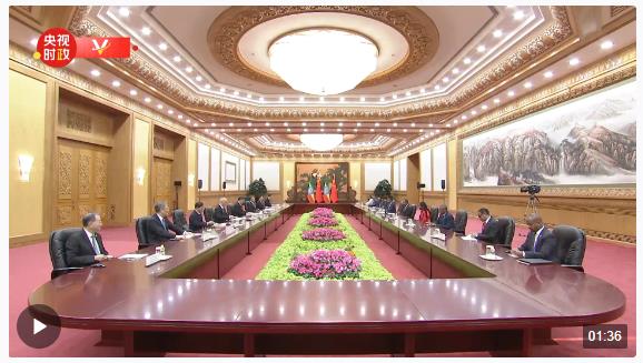 10月17日上午,國(guó)家主席習(xí)近平在人民大會(huì)堂會(huì)見(jiàn)來(lái)華出席第三屆“一帶一路”國(guó)際合作高峰論壇并進(jìn)行正式訪問(wèn)的埃塞俄比亞總理阿比。