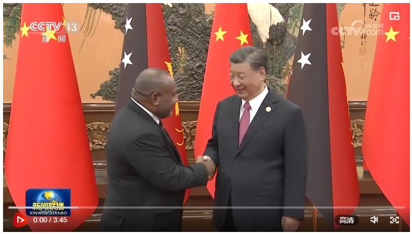 習近平指出,巴新是最早同新中國建交的太平洋島國之一。建交47年來,兩國全面戰(zhàn)略伙伴關系日益成熟穩(wěn)健。中方贊賞巴新恪守一個中國原則,在涉及中國核心利益和重大關切問題上堅定支持中方。中方也將堅定支持巴新維護國家主權、安全、發(fā)展利益,走符合自身國情的發(fā)展道路,愿同巴新賡續(xù)傳統(tǒng)友誼,夯實政治互信,拓展合作領域,造福兩國人民。