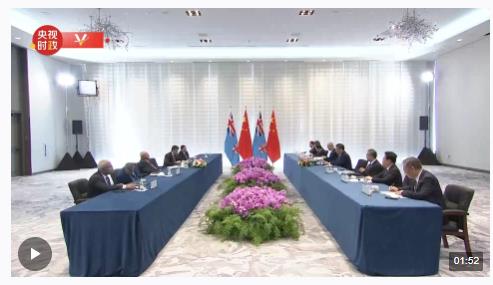 當(dāng)?shù)貢r(shí)間11月16日上午,國(guó)家主席習(xí)近平在美國(guó)舊金山會(huì)見(jiàn)斐濟(jì)總理蘭布卡。