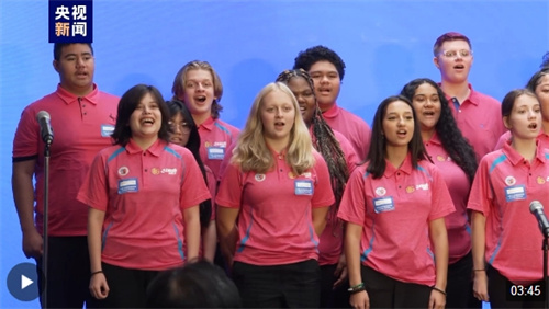 活動(dòng)現(xiàn)場,來自華盛頓州林肯中學(xué)的合唱團(tuán)演唱了中文歌曲《在希望的田野上》和英文歌曲《伴我同行》,祝愿中美友誼的紐帶更加牢固,煥發(fā)新的活力。同學(xué)們還為習(xí)近平主席和夫人彭麗媛精心準(zhǔn)備了手繪畫作《一起向未來》,并用精美的生日賀卡和《生日快樂》歌親切地為“彭麻麻”送上了生日祝福。總臺(tái)臺(tái)長代為接收。