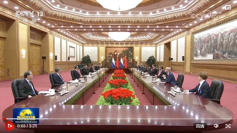 習近平指出,近年來,中荷關(guān)系穩(wěn)健快速發(fā)展,兩國各領(lǐng)域合作持續(xù)深化,荷蘭已經(jīng)成為名副其實的中歐合作“門戶”。中方愿同荷方保持各層級交往,堅持溝通對話,堅持互利共贏,推動中荷開放務實的全面合作伙伴關(guān)系不斷發(fā)展。中方愿擴大荷蘭優(yōu)質(zhì)商品進口,歡迎荷蘭企業(yè)來華投資,也希望荷方為中國企業(yè)提供公正、透明的營商環(huán)境。雙方要積極推進農(nóng)業(yè)、水利、能源等傳統(tǒng)合作,同時挖掘人工智能、綠色轉(zhuǎn)型、銀發(fā)經(jīng)濟等領(lǐng)域合作潛力。希望雙方繼續(xù)采取更多便利人員往來措施,鼓勵教育、文化和民間交流。中方愿同荷方加強在聯(lián)合國、世界貿(mào)易組織等多邊機構(gòu)的溝通協(xié)調(diào),共同應對氣候變化、生物多樣性等全球挑戰(zhàn)。