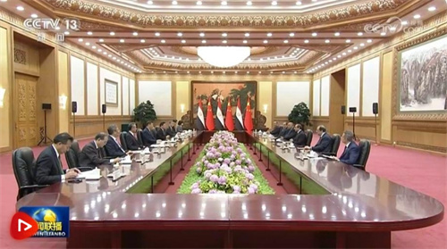 塞西表示,很高興來華進(jìn)行國事訪問并出席中阿合作論壇第十屆部長級會議開幕式。當(dāng)前世界正處于深刻復(fù)雜變化之中,中東地區(qū)深陷危機(jī)。埃方期待同中方進(jìn)一步深化全面戰(zhàn)略伙伴關(guān)系,努力促進(jìn)地區(qū)和平穩(wěn)定。埃方恪守一個(gè)中國原則,堅(jiān)定支持中方在涉臺、涉港、涉藏、人權(quán)等核心利益問題上的立場,堅(jiān)定支持中國實(shí)現(xiàn)國家完全統(tǒng)一。埃方歡迎更多中國企業(yè)赴埃投資合作,助力埃及制造業(yè)發(fā)展和工業(yè)化進(jìn)程。希望以今年“埃中伙伴年”為契機(jī),密切人文交流,加強(qiáng)兩國在信息通訊、人工智能、新能源、糧食安全、金融等方面合作。埃方贊賞習(xí)近平主席提出的系列全球倡議,愿同中方密切多邊協(xié)作,為人類和平進(jìn)步作出積極貢獻(xiàn)。