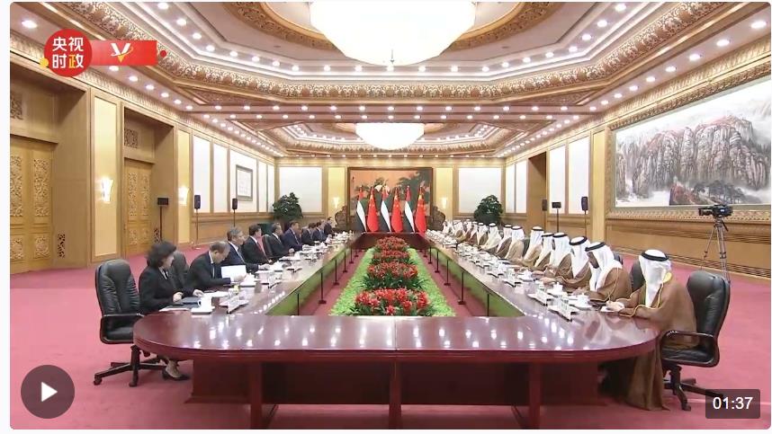 5月30日下午,國家主席習近平在北京人民大會堂同來華出席中國—阿拉伯國家合作論壇第十屆部長級會議開幕式并進行國事訪問的阿聯酋總統(tǒng)穆罕默德舉行會談。