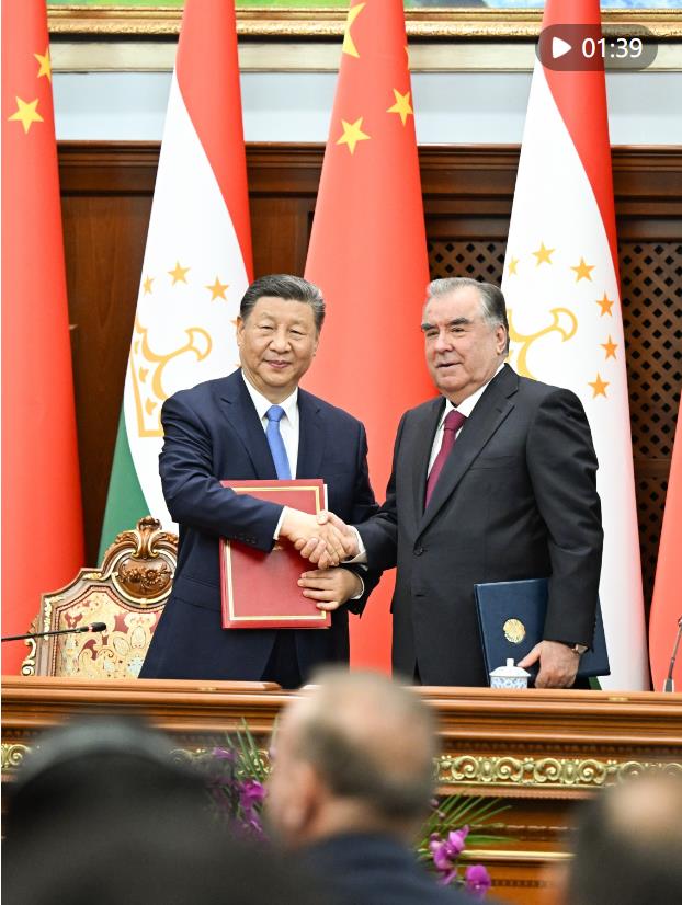 7月5日,正在塔吉克斯坦進行國事訪問的國家主席習近平在同塔吉克斯坦總統(tǒng)拉赫蒙舉行大范圍會談時說,中國永遠是塔吉克斯坦值得信任的朋友、可以倚重的伙伴、親密無間的兄弟。