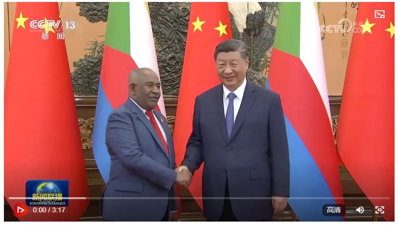 習(xí)近平贊賞科摩羅擔(dān)任非盟輪值主席國(guó)期間發(fā)揮的積極作用,指出中方愿同科方秉持和平共處五項(xiàng)原則,在非盟、阿拉伯國(guó)家聯(lián)盟、伊斯蘭合作組織框架內(nèi)加強(qiáng)溝通協(xié)作,壯大“全球南方”新興力量,推動(dòng)全球治理體系改革。