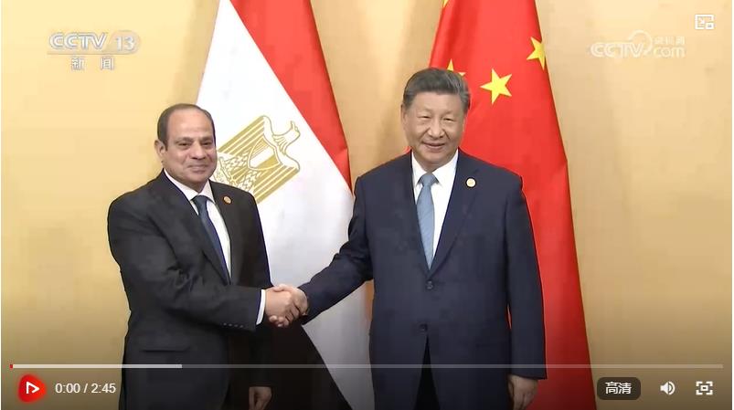 習近平祝賀并歡迎埃及首次作為正式成員參加金磚國家領導人會晤。習近平指出,今年是“中;锇槟辍焙蛢蓢⑷鎽(zhàn)略伙伴關系10周年。中方堅定支持埃及維護國家主權、安全、發(fā)展利益,愿同埃方做守望相助的真誠朋友、攜手發(fā)展的親密伙伴。雙方要繼續(xù)堅定相互支持,鞏固政治互信,深化務實合作,高質量共建“一帶一路”,密切人文交流,推動雙邊關系朝著構建面向新時代的中埃命運共同體目標持續(xù)邁進。中方也愿同埃方加強協調,推動“大金磚合作”行穩(wěn)致遠,進一步提升全球南方影響力和發(fā)言權,維護發(fā)展中國家共同利益。