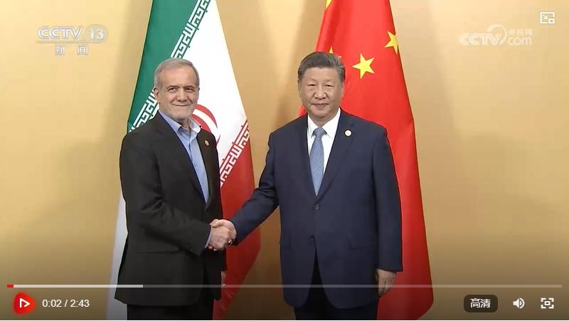 習(xí)近平祝賀并歡迎伊朗首次作為正式成員參加金磚國(guó)家領(lǐng)導(dǎo)人會(huì)晤,指出中方愿同伊方在金磚等多邊框架內(nèi)加強(qiáng)合作,進(jìn)一步提升全球南方的影響力和發(fā)言權(quán),推動(dòng)國(guó)際秩序朝著更加公正合理的方向發(fā)展。