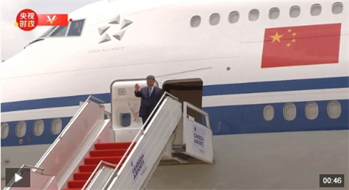 獨家視頻丨習近平步出艙門 柬埔寨國王西哈莫尼熱情迎接