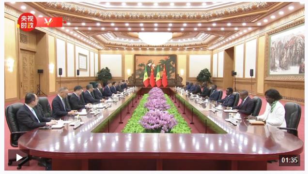 6月27日上午,國(guó)家主席習(xí)近平在北京人民大會(huì)堂會(huì)見(jiàn)來(lái)華出席夏季達(dá)沃斯論壇的塞內(nèi)加爾總理松科。