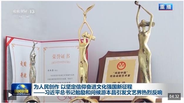 國家話劇院一級演員 游本昌:習近平總書記真是日理萬機,還能對我這樣一個老人拿出時間來,對我進行勉勵。這絕對不是對我一個人的,這是對我們整個的文化界,整個文藝界所有同行們的,這是沉甸甸的一份囑咐。我們一定要全力以赴,全部的力量把它付諸行動,付諸實踐,站牢人民的立場,為人民服務。