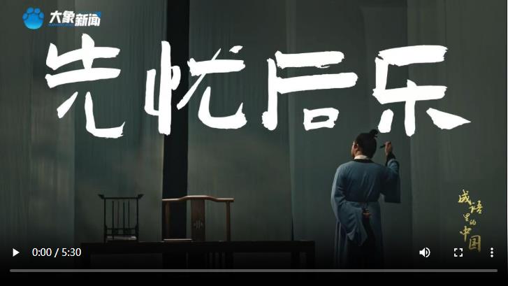 《文脈華章|成語(yǔ)里的中國(guó):先憂后樂(lè)》詳細(xì)解讀“先天下之憂而憂,后天下之樂(lè)而樂(lè)”的淵源、內(nèi)涵、時(shí)代意義,我們一起感悟總書記反復(fù)強(qiáng)調(diào)這句話的深意。