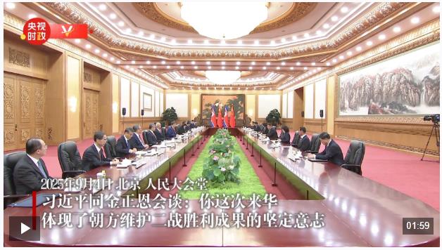 9月4日晚,中共中央總書記、國家主席習近平在北京人民大會堂同來華出席紀念中國人民抗日戰(zhàn)爭暨世界反法西斯戰(zhàn)爭勝利80周年活動的朝鮮勞動黨總書記、國務委員長金正恩舉行會談。