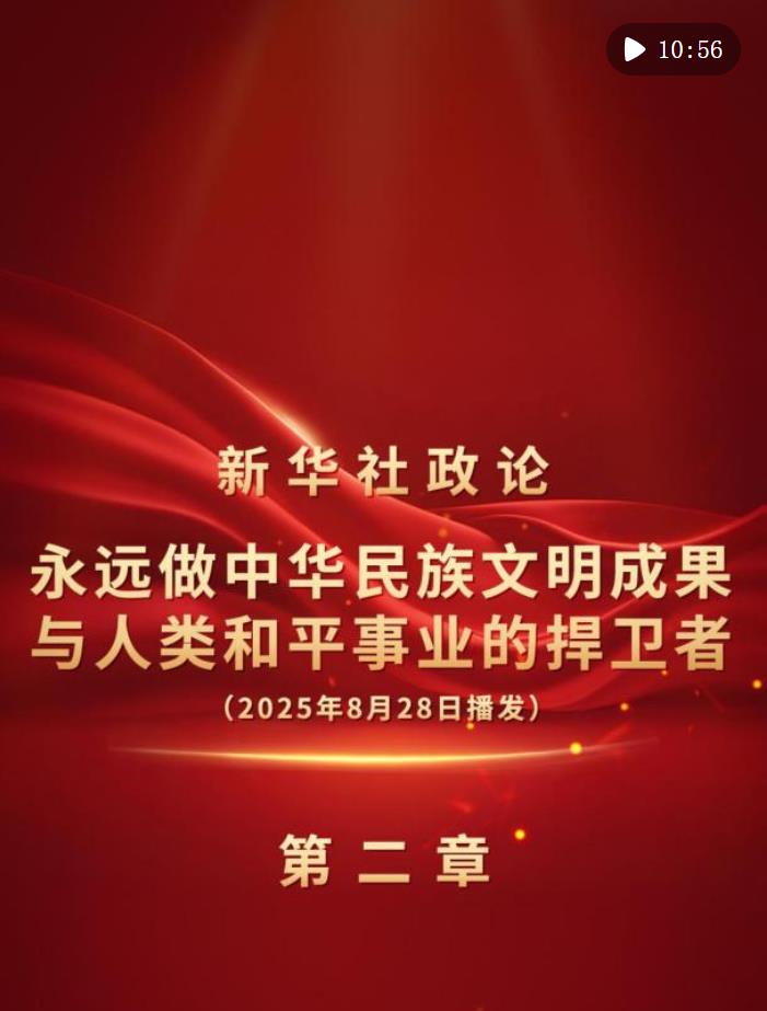新華社8月28日播發(fā)《新華社政論|永遠(yuǎn)做中華民族文明成果與人類和平事業(yè)的捍衛(wèi)者——寫在中國人民抗日戰(zhàn)爭暨世界反法西斯戰(zhàn)爭勝利80周年之際》。我們邀請(qǐng)誦讀嘉賓李立宏演播“第二章”。