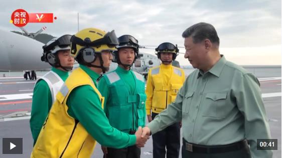 我國(guó)第一艘電磁彈射型航空母艦福建艦入列授旗儀式5日在海南三亞某軍港舉行。中共中央總書(shū)記、國(guó)家主席、中央軍委主席習(xí)近平出席入列授旗儀式并登艦視察。