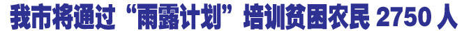 本報(bào)訊(記者杜玲 通訊員桑亞軍)記者近日從市財(cái)政局獲悉,今年,我市將通過“雨露計(jì)劃”培訓(xùn)貧困農(nóng)民2750人,其中職業(yè)技能培訓(xùn)1250人,包括企業(yè)直接培訓(xùn)安置就業(yè)200人、3個月技能培訓(xùn)550人、2年職業(yè)教育“藍(lán)領(lǐng)班”培訓(xùn)500人;引導(dǎo)性培訓(xùn)1500人,進(jìn)一步提高貧困地區(qū)農(nóng)民的整體素質(zhì),增強(qiáng)其勞務(wù)就業(yè)和創(chuàng)業(yè)能力。