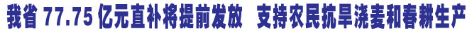 (記者田宜龍 通訊員 郭鴻勛)針對當前嚴峻的抗旱形勢,我省將在3月15日前兌現(xiàn)財政部下達我省的77.75億元糧食直補和農(nóng)資綜合直補資金,較去年提前一個月,以支持農(nóng)民進行抗旱澆麥和春耕生產(chǎn)。
