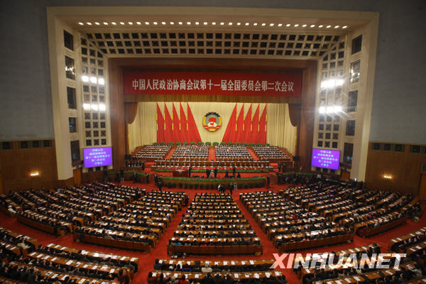 大會首先審議通過了政協(xié)第十一屆全國委員會第二次會議議程。