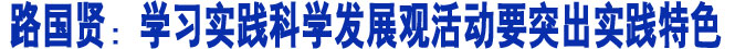 路國(guó)賢指出,突出實(shí)踐性是學(xué)習(xí)實(shí)踐活動(dòng)的基本要求。第一,學(xué)習(xí)的目的在于應(yīng)用,一定要把學(xué)習(xí)實(shí)踐活動(dòng)和應(yīng)用結(jié)合起來(lái),和指導(dǎo)實(shí)踐結(jié)合起來(lái),不能空對(duì)空。第二,學(xué)習(xí)實(shí)踐活動(dòng)要求我們提高貫徹落實(shí)科學(xué)發(fā)展觀的實(shí)踐能力,實(shí)現(xiàn)經(jīng)濟(jì)社會(huì)又好又快發(fā)展。當(dāng)前的國(guó)際金融危機(jī)給我們帶來(lái)了很多新情況、新問(wèn)題,我們的思想方法、工作方法和作風(fēng)建設(shè)還有很多與科學(xué)發(fā)展觀不相適應(yīng)的地方,人民群眾對(duì)發(fā)展有更多新期待、新要求,這就迫切需要我們提高實(shí)踐能力,用科學(xué)發(fā)展觀指導(dǎo)實(shí)踐,用科學(xué)發(fā)展觀破解發(fā)展難題。第三,學(xué)習(xí)實(shí)踐活動(dòng)正處于金融危機(jī)的關(guān)鍵時(shí)期,要實(shí)現(xiàn)“三保”目標(biāo),關(guān)鍵要靠實(shí)踐。要通過(guò)實(shí)際工作,通過(guò)發(fā)展來(lái)體現(xiàn)學(xué)習(xí)實(shí)踐活動(dòng),用學(xué)習(xí)實(shí)踐活動(dòng)指導(dǎo)解決當(dāng)前存在的問(wèn)題。離開(kāi)了實(shí)踐的發(fā)展觀不是科學(xué)的發(fā)展觀,不發(fā)展就不科學(xué),發(fā)展是一個(gè)實(shí)踐的過(guò)程。