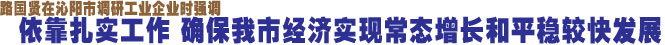 路國(guó)賢指出,目前的經(jīng)濟(jì)運(yùn)行中,部分企業(yè)在生產(chǎn)經(jīng)營(yíng)過(guò)程中還存在資金短缺、能源供應(yīng)不足等困難,這就要求全市各級(jí)各部門積極主動(dòng)、想方設(shè)法服務(wù)企業(yè)、支持企業(yè),積極主動(dòng)深入企業(yè),要善于發(fā)現(xiàn)問(wèn)題、解決問(wèn)題,尤其要著力解決制約企業(yè)發(fā)展的關(guān)鍵問(wèn)題。在為企業(yè)服務(wù)、支持企業(yè)發(fā)展問(wèn)題上,要算大賬、算長(zhǎng)遠(yuǎn)賬,堅(jiān)決克服殺雞取卵、鼠目寸光的現(xiàn)象,要放水養(yǎng)魚,讓利于企業(yè),努力培育新的經(jīng)濟(jì)增長(zhǎng)點(diǎn),推動(dòng)整個(gè)經(jīng)濟(jì)快速發(fā)展。要依靠扎實(shí)的工作,解難題,促發(fā)展,提速度。解難題就是要對(duì)現(xiàn)有企業(yè)特別是重點(diǎn)企業(yè)一個(gè)企業(yè)一個(gè)企業(yè)研究,一個(gè)問(wèn)題一個(gè)問(wèn)題解決。很多企業(yè)之所以開不了工,就是因?yàn)榇嬖谶@樣或那樣的問(wèn)題,各級(jí)各部門對(duì)沒(méi)有開工的企業(yè),要認(rèn)真研究、認(rèn)真分析,找出癥結(jié)所在,安排專人負(fù)責(zé),限期解決,促使企業(yè)盡快開工生產(chǎn)。企業(yè)如果不能正常開工生產(chǎn),保增長(zhǎng)就成了一句空話。促發(fā)展就是要確保經(jīng)濟(jì)各項(xiàng)指標(biāo)盡快走出低位運(yùn)行的局面,實(shí)現(xiàn)常態(tài)增長(zhǎng)和平穩(wěn)較快發(fā)展。保增長(zhǎng)是當(dāng)前最大的任務(wù)。決戰(zhàn)二季度,5月份是關(guān)鍵。全市各級(jí)各部門都不能松勁,要扎扎實(shí)實(shí)抓好工作,打好基礎(chǔ),把問(wèn)題解決好。提速度就是要在全國(guó)大環(huán)境開始向好的方向發(fā)展的情況下,焦作也要加快發(fā)展。全市各級(jí)各部門要進(jìn)一步增強(qiáng)危機(jī)感和緊迫感,在保證有市場(chǎng)、有效益的情況下,提升發(fā)展速度,能發(fā)展多快就發(fā)展多快。