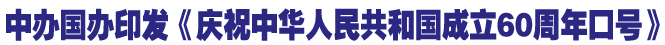 新華網(wǎng)北京9月11日電中共中央辦公廳、國務(wù)院辦公廳近日印發(fā)了《慶祝中華人民共和國成立60周年口號(hào)》,全文如下:
