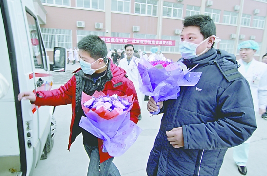 上圖 首批重癥甲流患者康復出院。 本報記者 趙林峰 攝