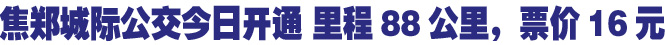 據(jù)了解,即將開通的焦鄭城際公交,是繼我省鄭開、鄭新、新開、鄭許城際公交開通之后的第五條城際公交線路。