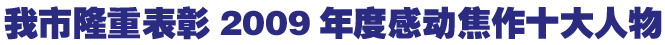 據(jù)悉,由市委宣傳部、市委政法委、焦作軍分區(qū)政治部、市總工會、團市委、市婦聯(lián)、市廣播電影電視局和焦作日報社主辦的“中國銀行杯”2009年度感動焦作十大人物評選活動從去年9月份正式啟動。經(jīng)過推薦、初評、總評,確定崔愛梅、王衛(wèi)東、李曉拴、王強、趙長禮、李戰(zhàn)通、李建國、趙會議、武苗苗、原永振10人當選感動焦作十大人物,郭小亮、杜滿堂、范占先、韓躍平、馬海洋獲得感動焦作十大人物特別獎。