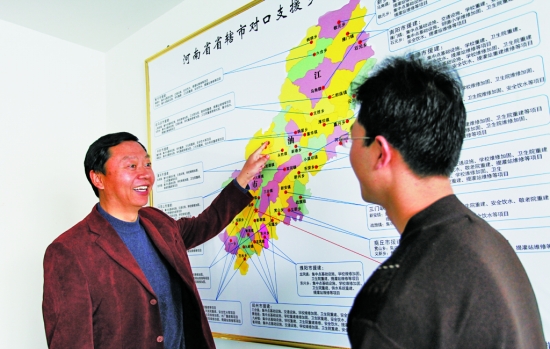 見(jiàn)到焦作市水利局副局長(zhǎng)崔元釗時(shí),他剛風(fēng)塵仆仆從阿壩藏族羌族自治州汶川縣返回江油。此行,他是受河南省對(duì)口支援江油市恢復(fù)重建前線指揮部的委托,帶領(lǐng)江油市有關(guān)局委負(fù)責(zé)人前往汶川取經(jīng)的。他很忙,既是前線指揮部副指揮長(zhǎng),又擔(dān)任著江油市委常委、副市長(zhǎng)的職務(wù),工作安排得滿滿的,擔(dān)子之重可想而知。“好在艱難的日子就要過(guò)去了。”站在即將竣工的“中原江油連心橋”前,崔元釗掩飾不住內(nèi)心的激動(dòng),“按照省委、省政府的要求,河南援建的總投資30億元的所有項(xiàng)目將在今年5月12日前基本完成,比國(guó)家提出的三年任務(wù)兩年基本完成的目標(biāo)提前四個(gè)月!庇浾吡私獾,目前,所有對(duì)口支援工作到了最后沖刺階段,投資3億元的江油河南工業(yè)園已接近尾聲,最后一個(gè)援建項(xiàng)目“中原愛(ài)心小區(qū)”三期工程8月底前竣工。