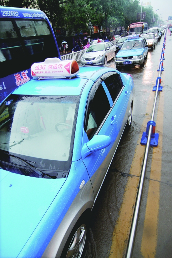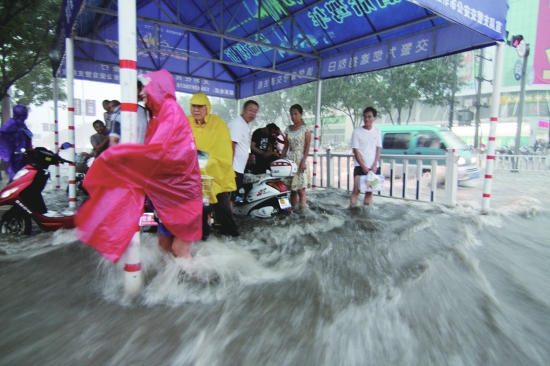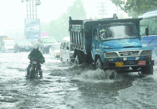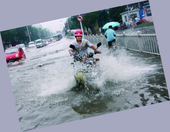 圖② 積水過(guò)深,一些車輛在行駛中拋錨,導(dǎo)致道路擁堵。