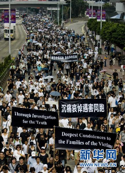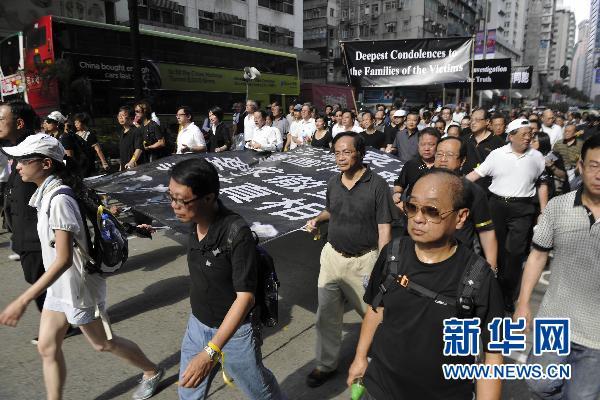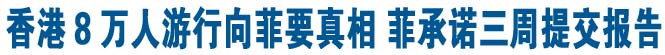 8萬(wàn)香港人在平和氣氛下參與游行,悼念在菲遇難同胞。 港八萬(wàn)人游行悼念遇難者 香港立法會(huì)發(fā)起游行要求菲律賓徹查人質(zhì)事件 香港特區(qū)立法會(huì)各政團(tuán)29日下午聯(lián)合發(fā)起“沉痛哀悼遇害同胞 要求徹查事件真相”游行。游行在平和的氣氛下舉行。 香港特區(qū)立法會(huì)各政團(tuán)29日下午聯(lián)合發(fā)起“沉痛哀悼遇害同胞 要求徹查事件真相”游行。主辦方表示,參加游行者達(dá)8萬(wàn)人。游行在平和的氣氛下舉行。 香港康泰旅行社一個(gè)包含20名香港游客和1名香港領(lǐng)隊(duì)的旅游團(tuán)23日在馬尼拉參觀行程中被歹徒劫持,造成8死7傷的慘劇。 29日15時(shí),30多位立法會(huì)議員走上維多利亞公園的臨時(shí)舞臺(tái),帶領(lǐng)市民一起為人質(zhì)事件遇難同胞默哀3分鐘。 特區(qū)立法會(huì)主席曾鈺成表示,立法會(huì)全體議員都對(duì)此次事件中的死難者表示沉痛哀悼,對(duì)死傷者及其家屬致以深切慰問,而菲律賓政府在事件當(dāng)時(shí)的處理方式有明顯錯(cuò)失,使立法會(huì)全體議員都感到強(qiáng)烈不滿。 游行隊(duì)伍在15時(shí)20分許出發(fā)。曾鈺成和立法會(huì)議員手持寫有“沉痛哀悼遇害同胞 要求徹查事件真相”的條幅,走在隊(duì)伍最前面。參與游行的市民大都穿著白色或黑色的衣服,表示對(duì)遇難同胞的悼念。(新華) 菲警方稱已彈道測(cè)試 “確定”8名港人遭槍手打死 本報(bào)訊 29日,菲律賓警方表示,他們可以“確定”在上周香港旅游團(tuán)在菲人質(zhì)劫持事件中,8名遇害者都是死于劫持者門多薩的槍下。 據(jù)報(bào)道,29日,菲律賓國(guó)家警察(PNP)發(fā)言人克魯茲表示,經(jīng)子彈彈道測(cè)試,這8名遇難港人的傷口均是遭劫持巴士?jī)?nèi)一把大口徑武器造成的。 克魯茲表示,“相當(dāng)程度上,我們可以肯定地說(shuō),受害者是被門多薩射殺的”。他同時(shí)說(shuō),“驗(yàn)尸結(jié)果顯示,擊中受害者的所有子彈都來(lái)自高火力武器”。 克魯茲表示,劫匪門多薩雖然是一名曾獲杰出警察稱號(hào)的前警官,但其在20世紀(jì)90年代曾以搶劫和勒索被提出控告。但是,指控因受害者未能出庭作證而被撤銷。而且,經(jīng)菲律賓警方進(jìn)一步調(diào)查,門多薩因今年早些時(shí)候勒索他人財(cái)物遭解職,他還被指犯下其他罪行。 (中新) |